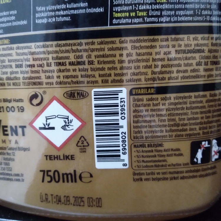 ویژگیهای محصول Por Çöz Fırın Temizleyici
